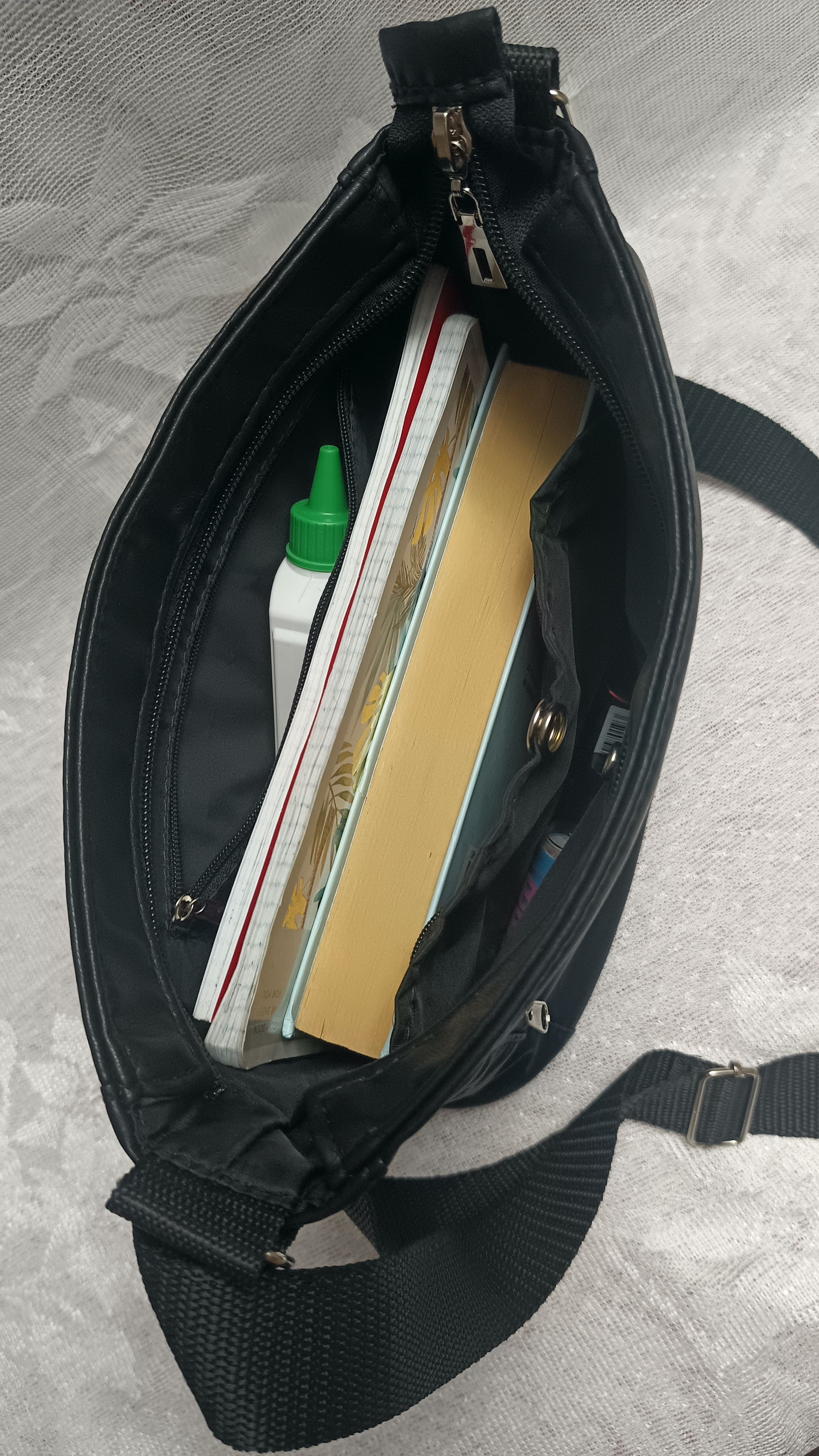 Её удобно носить. Ремешок с регулируемой длиной освобождает руки, если носить сумку «через плечо» к тому же нагрузка на позвоночник становится при этом более равномерной.